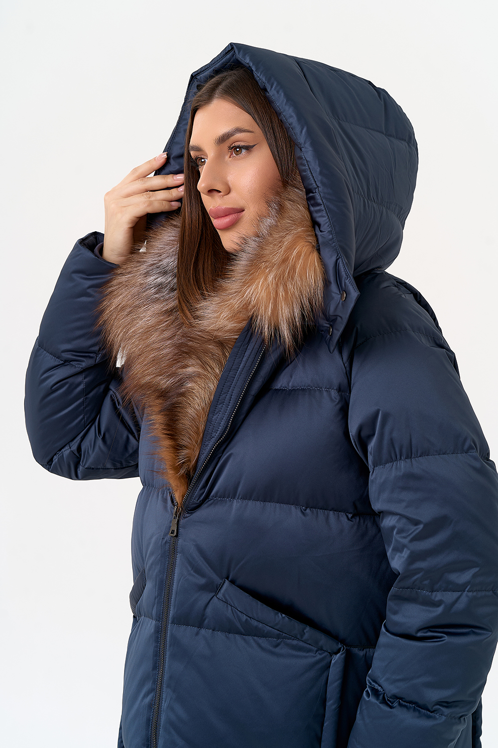 Крой воротника - капюшон, отделка блюфрост