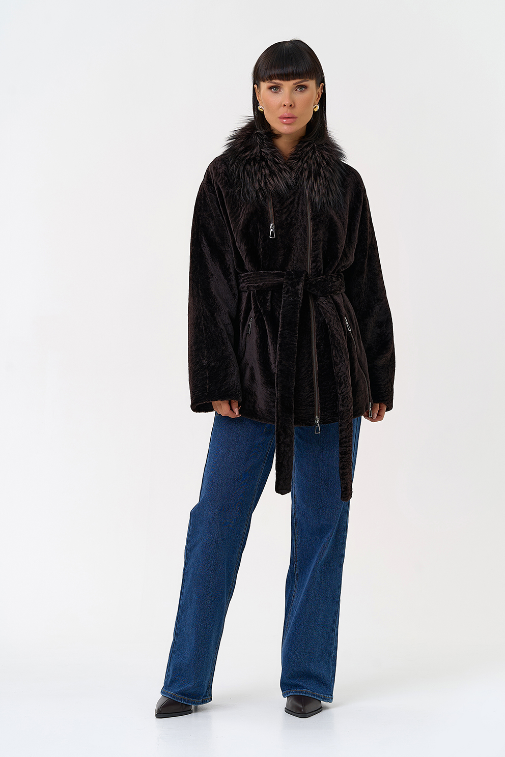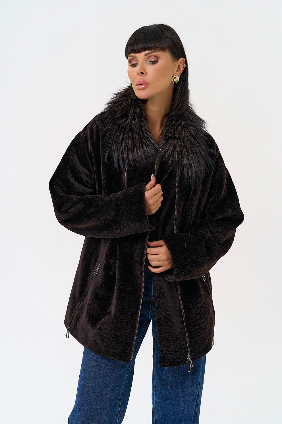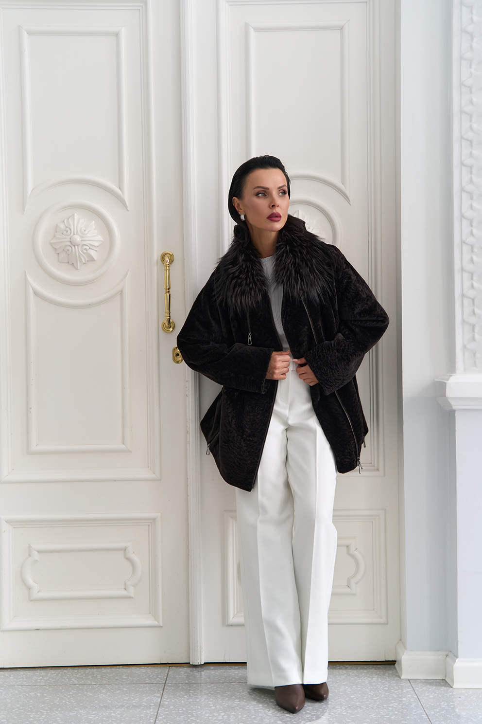 Вид ворота - отложной, отделка чернобурка
