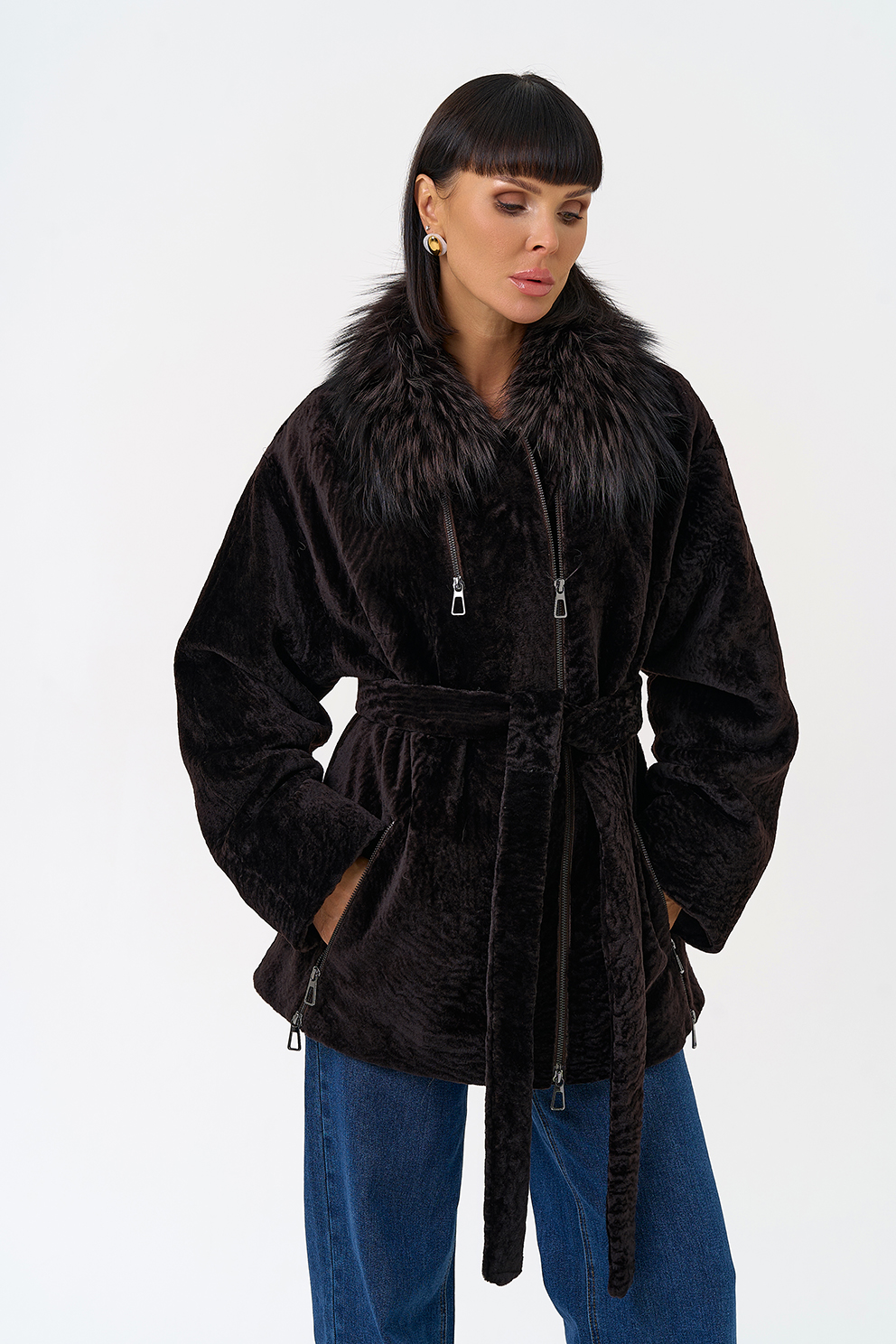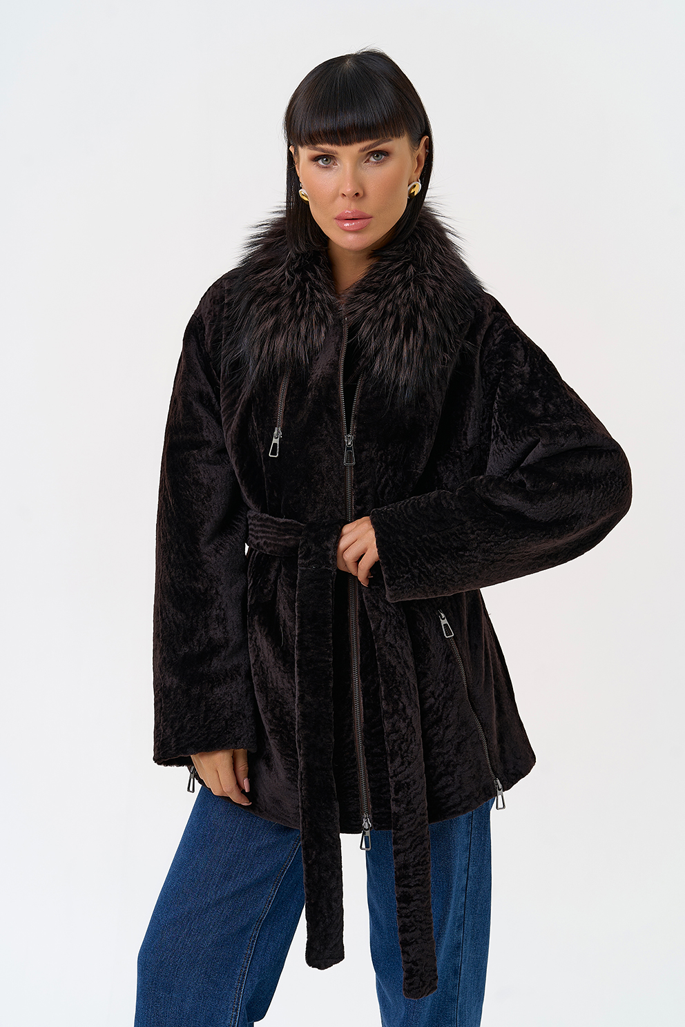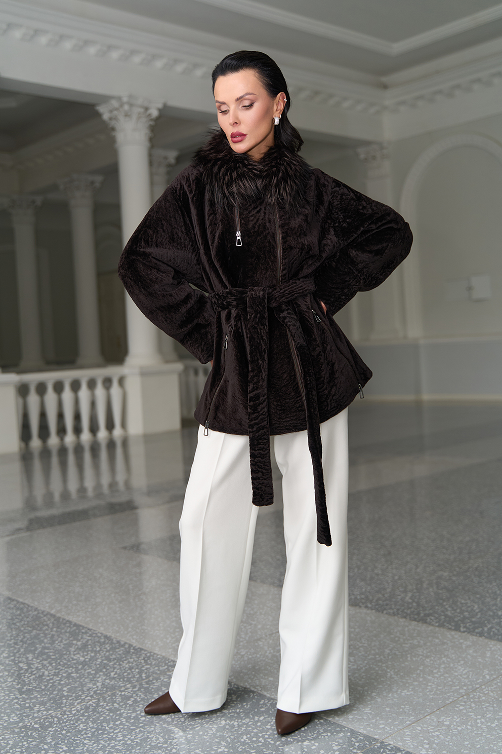 Вид ворота - отложной, отделка чернобурка