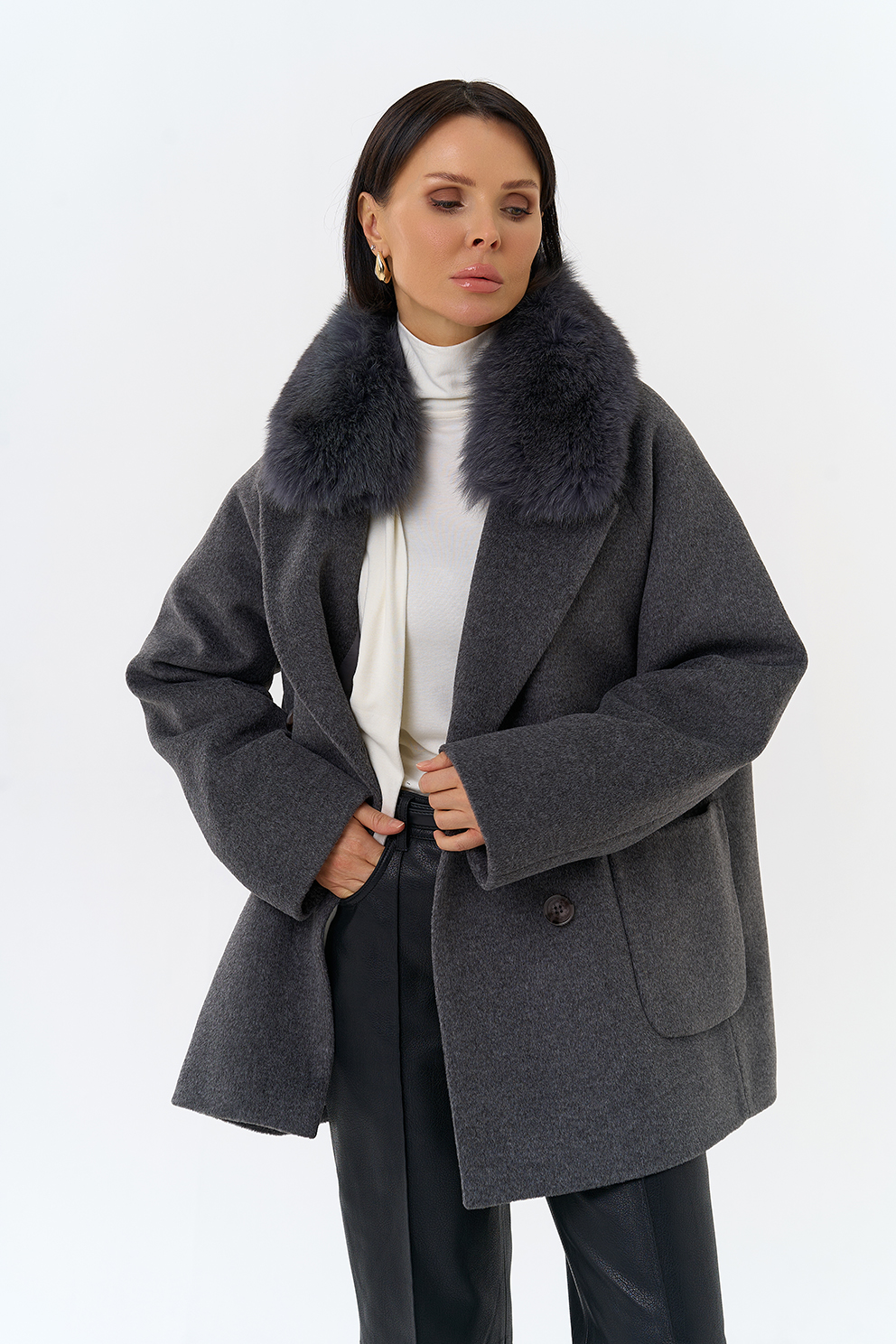 Крой воротника - английский воротник, отделка песец